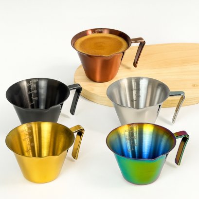 พร้อมส่ง!!! ถ้วยตวงเอสเปรสโซ่ ถ้วยตวงกาแฟ สแตนเลส 304 ขนาด 100 มล. พร้อมที่จับ Measuring Cup Stainless แบบ 2 สเกล oz / ml