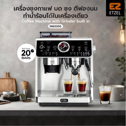 ETZEL เครื่องชงกาแฟมีที่บดในตัว รุ่น SN6505G บด ชง สตรีมนมได้ในเครื่องเดียว Espresso Machine with grinder