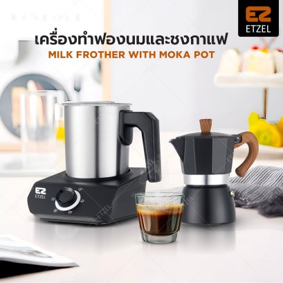 ETZEL เครื่องทำฟองนมอัตโนมัติ พร้อมโมก้าพอท รุ่น SN987 แบบ 5 in 1 , Milk Frother with Moka pot