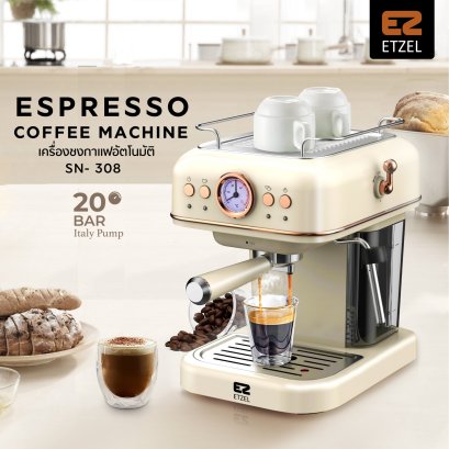 เครื่องชงกาแฟ ETZEL รุ่น SN308 สีดำและสีครีม รับประกัน 1 ปี
